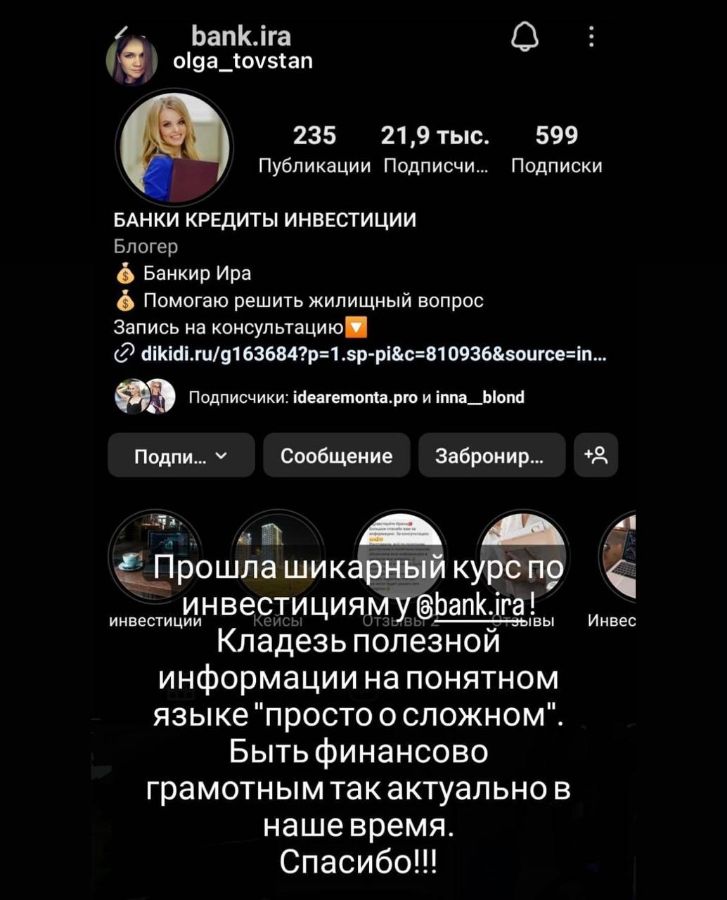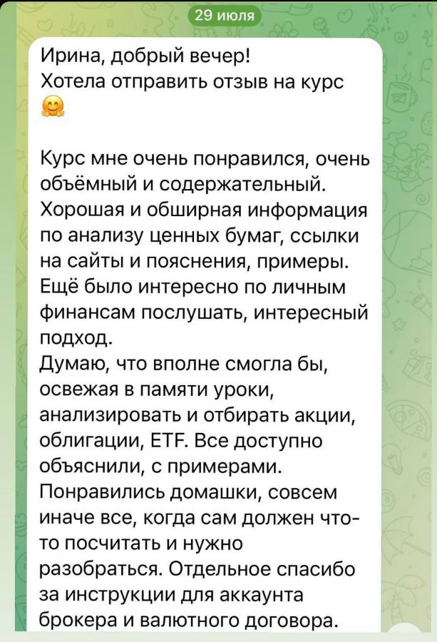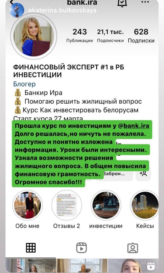 2 500 BYNМеня зовут Ирина Каптур. Я - экономист, инвестор и блогер. Знаю, как легко управлять финансами и сделать так, что бы деньги работали на вас.
